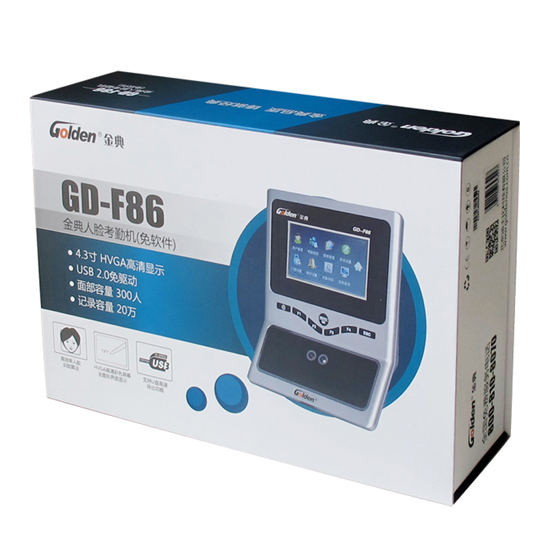 膠鍋工作溫度: 金典 加工書本厚度(mm): GD-F86 定型槽板厚度(mm): 人臉考勤機 機器尺寸(mm): <= 1 秒 工作寬度(mm): 人臉、密碼 機器尺寸(mm): 20 萬條 電源: 300 人 (選配如果有需要可以升級500/1000) 產(chǎn)品類型: USB 2.0 免驅(qū)動,10M/100M 以太網(wǎng)(選配)USB HOST, 其他特性: DC12V 2A 裝訂規(guī)格(mm): 支持 電源: 210*165*80MM 功率(W): 305*205*90MM 包裝尺寸(mm): 4.3 寸HVGA 高清顯示