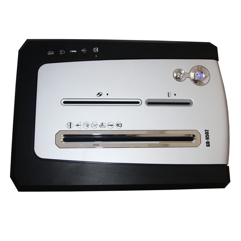 把待碎紙放入進(jìn)紙口,機(jī)器自動(dòng)啟動(dòng)碎紙。(若為光盤或者卡放入對應(yīng)光盤、卡入口即可。)