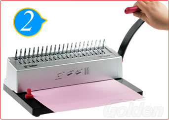 將要裝訂的文本平行放入進(jìn)行打孔。