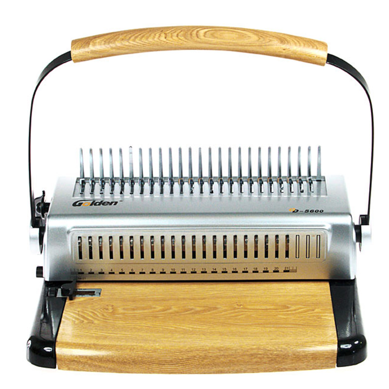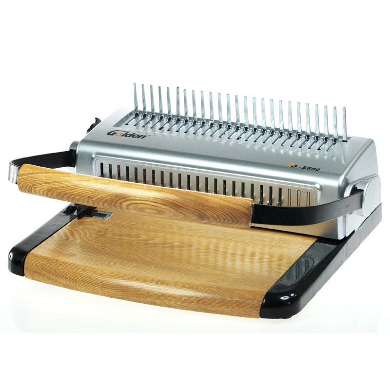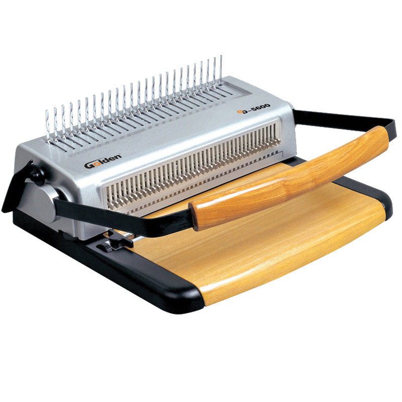梳式膠圈裝訂機是所有裝訂機中,使用成本最低的一種,簡單、易拆卸,可多次重復裝訂使用;比較適用于小型辦公室或一般會議文件的裝訂,以及小型的文印社。一 種裝訂機有兩種裝訂方法,這也是它的一大特色。梳式裝訂機為活頁式,增刪頁方便,可實現(xiàn)文本360度翻轉,膠圈直徑的大小,決定了文本裝訂厚度,這種裝訂 方式由于膠圈的尺寸、顏色以及封皮的顏色選擇余地較大,故搭配出的效果也千差萬別,風格獨特,美觀大方。