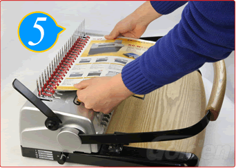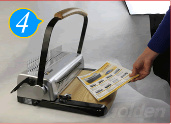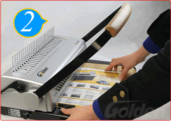 根據(jù)紙張數(shù)量,選擇大小不同規(guī)格的拉圈,將手柄慢慢地往上推至拉圈打開,然后將紙張孔插入拉圈內,將手柄慢慢往回拉,讓拉圈齒全部插進紙張孔后,將手柄拉到位,收緊拉圈口,裝訂本就裝好了
