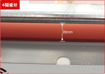 獨(dú)特的4輥設(shè)計(jì),前面兩輥起加熱作用,后面兩輥起軋平作用,直徑26mm的超粗輥,比普通直徑為19mm的輥,加熱速度更快,塑封效果更好。