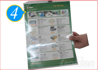 插上電源,根據(jù)膜的厚度調(diào)好溫度,將要塑封的文件放入專業(yè)塑封膜中。