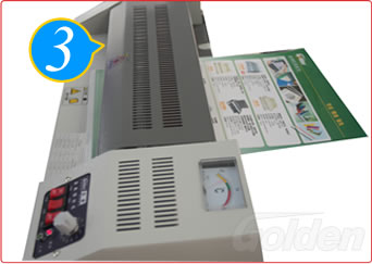 待機器預熱完畢,將裝好文件的塑封膜封口一邊平推入進口處。