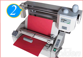 將預(yù)先制作好的封皮(應(yīng)已經(jīng)用壓痕機(jī)或手工制作出折痕)從下放入壓紙夾與翻轉(zhuǎn)臺中間,封面靠向翻轉(zhuǎn)臺及向上,并將封皮緊靠定位柱。為方便放入封皮,可將翻轉(zhuǎn)臺稍為提高。