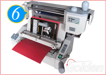將右手柄鄉(xiāng)下壓緊壓至DN位置,以便在封底上壓上一條折線,然后將手柄推回N之位置。