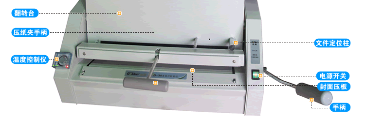 上膠后立刻用左手輕輕牽扯著封底,右手將操作桿按下至N位置同時(shí)將操作桿按緊在DN位置上并保持6~8秒。松開右手柄,將壓紙夾的手柄放下,打開壓紙夾,向下取出制好的文件或書籍,平放幾分鐘待膠略硬后即可翻閱。