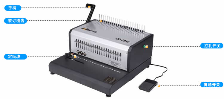 邊距可調(diào),三種規(guī)格邊距( 3MM,6MM,9MM);電動打孔,區(qū)別于普通裝訂機(jī)手動打孔,關(guān)鍵:一鍵式輕松打孔,輕輕按下打孔開關(guān)按鈕或腳踏開關(guān)進(jìn)行打孔(兩種方式任選一種打孔方式都可以,如下圖);適用于:辦公室、廣告公司、印刷廠、文印裝訂商務(wù)社等。
