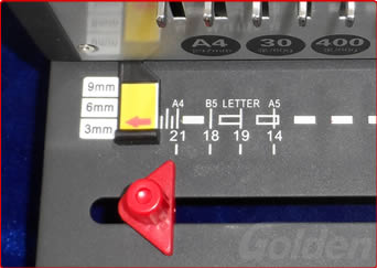 選定邊距,即紙張邊緣與孔之間的距離,可以有三種規(guī)格邊距可選( 3MM,6MM,9MM),,注意箭頭指定的尺寸 (比如箭頭指向9,定位邊距就是9MM)